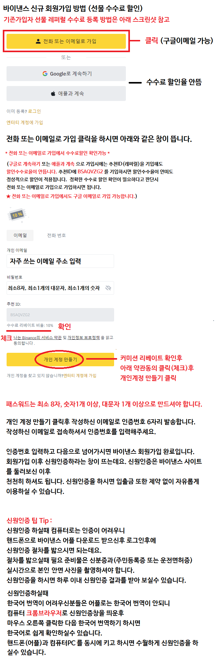 위 링크 주소를 클릭 하시면 아래의 바이낸스 회원가입(수수료할인) 창으로 이동합니다.
